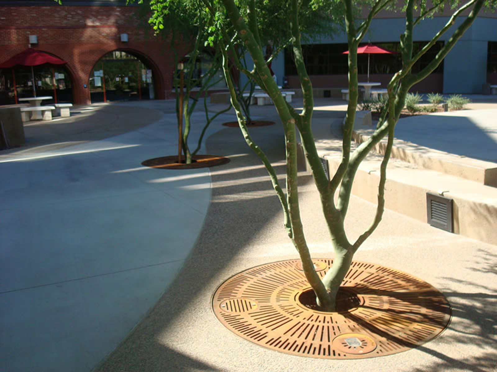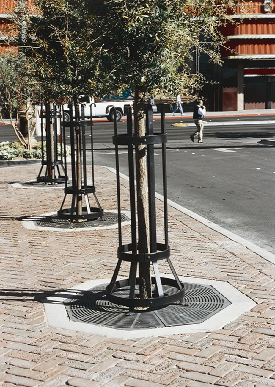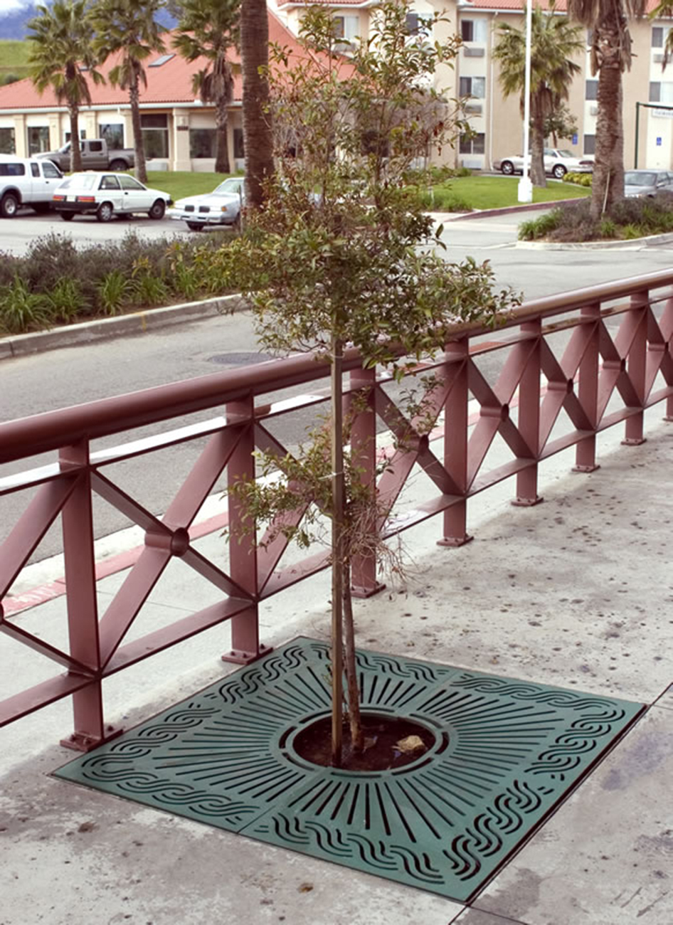 Offering the largest selection of pedestrian safe tree grates in the industry. In addition to tree grates we offer tree guards, trench grates, bollards and Paver Grate System® http://www.ironsmith.cc/radius-trench.htm. Trench grates are available in both straight and custom radius to meet your specifications. Castings are made of recycled iron, aluminum or bronze.