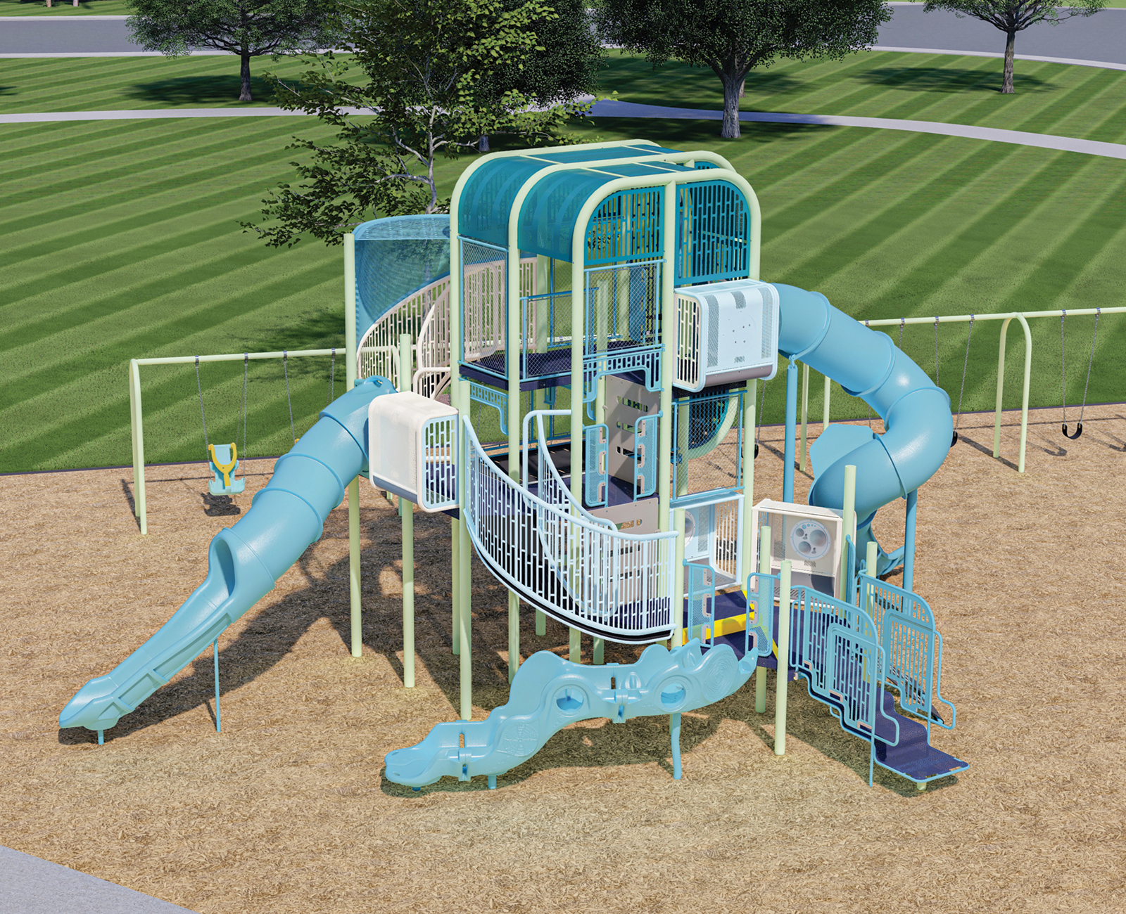 Improve community health and wellness with THRIVE outdoor composite fitness structures from GameTime. THRIVE fitness systems accommodate multiple users at once, providing a wide range of personal or group training options.